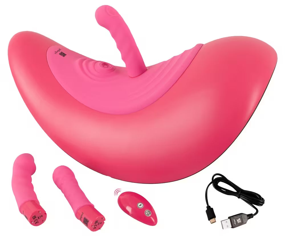 Eingebettet in die weiche Silikonmulde empfangen Vulva und Klitoris präzise Impulse, während eine der 3 austauschbaren Spitzen für die Penetration sorgt.