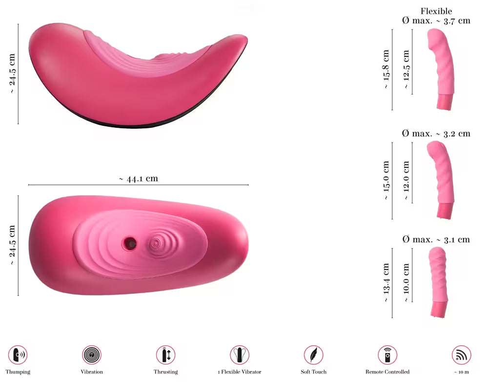 Jeder Aufsatz bietet ein anderes Empfinden (Druck, Vibration oder Klopfen), das Sie mit dem Vibrationspad für individuelle Orgasmen kombinieren können.
