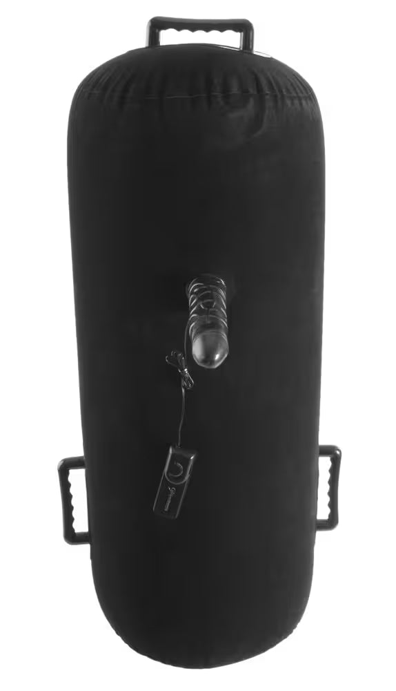 Coussin d’assise gonflable, allongé, avec vibromasseur intégré au look de pénis veiné.