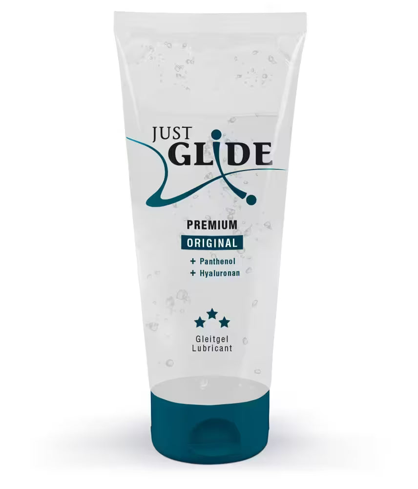 Just Glide Premium ist ein wasserbasiertes Gleitgel für langanhaltendes Gleiten bei sanfter Hautverträglichkeit. Die öl- und fettfreie Formel lässt sich leicht abspülen und ist geschmacks- und geruchsneutral. Angereichert mit Hyaluronsäure (feuchtigkeitsspendend) und Panthenol (beruhigend) bietet es eine besonders weiche und angenehme Textur. Kompatibel mit Latexkondomen.