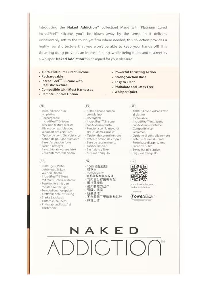 Der Thrusting Dong RC von Naked Addiction bildet einen Penis detailgetreu nach (definierte Eichel, feine Adern) und bietet dank seiner 7 Geschwindigkeitsstufen eine kontinuierliche Stoßbewegung. Der Saugnapf unter den Hoden haftet an glatten Oberflächen für freihändiges Vergnügen, und das Spielzeug kann für verschiedene Stellungen auch in ein Harness eingesetzt werden. Schlüsselsperre und automatische Abschaltung ermöglichen diskretes Reisen und unbeschwerten Spielspaß.